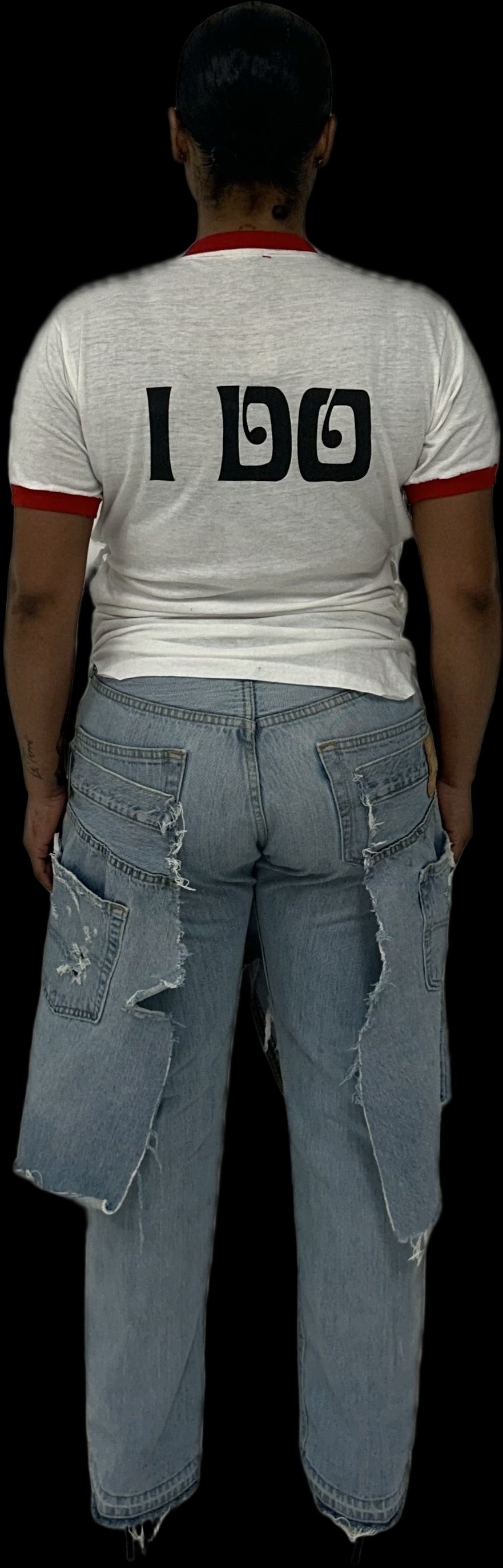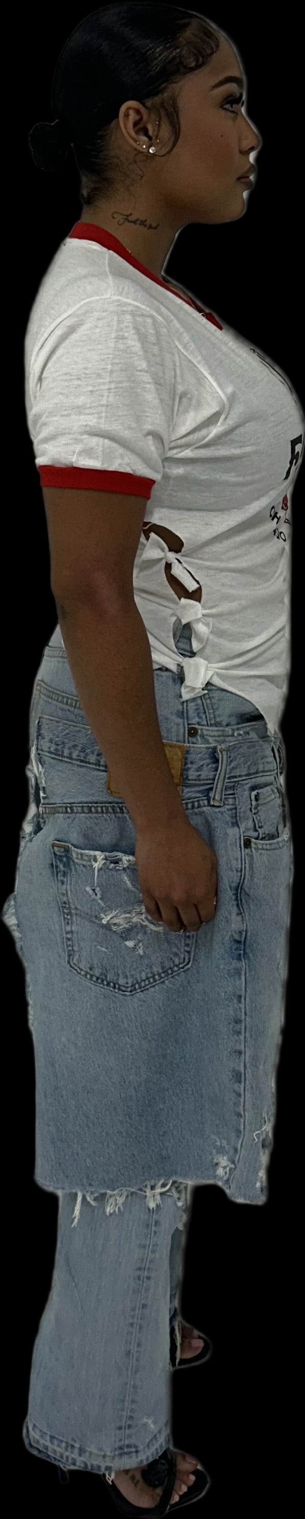 Authentic vintage Chicago Heart Association t-shirt reworked with red rivets, tie up side detailing and a u-shaped hemline.